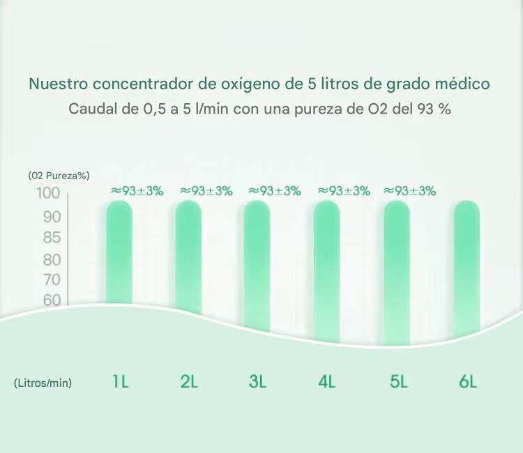 Nuestro concentrador de oxígeno de 5 litros, un dispositivo de grado médico, suministra oxígeno suplementario de hasta 5 LPM de forma continua para quienes necesitan oxígeno adicional, disponible las 24 horas, los 7 días de la semana, durante todo el año. Puede tratar eficazmente a pacientes con trastornos pulmonares como EPOC y fibrosis pulmonar, así como enfermedades cardiovasculares y otras afecciones asociadas con la hipoxia.